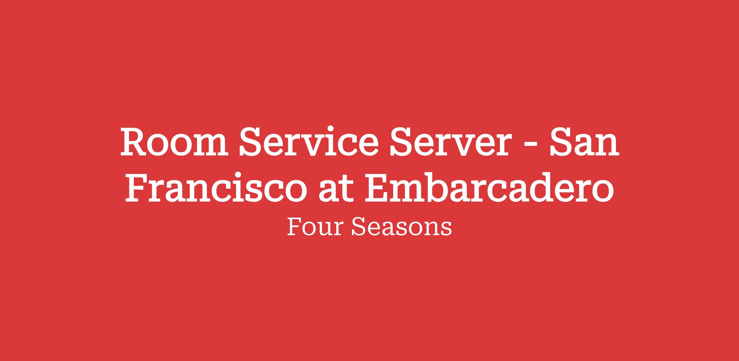 The Four Seasons Hotel San Francisco at Embarcadero seeks a Room Service Server to join our talented team! Don't miss this unique opportunity to be part of the world's leading luxury hotel company!